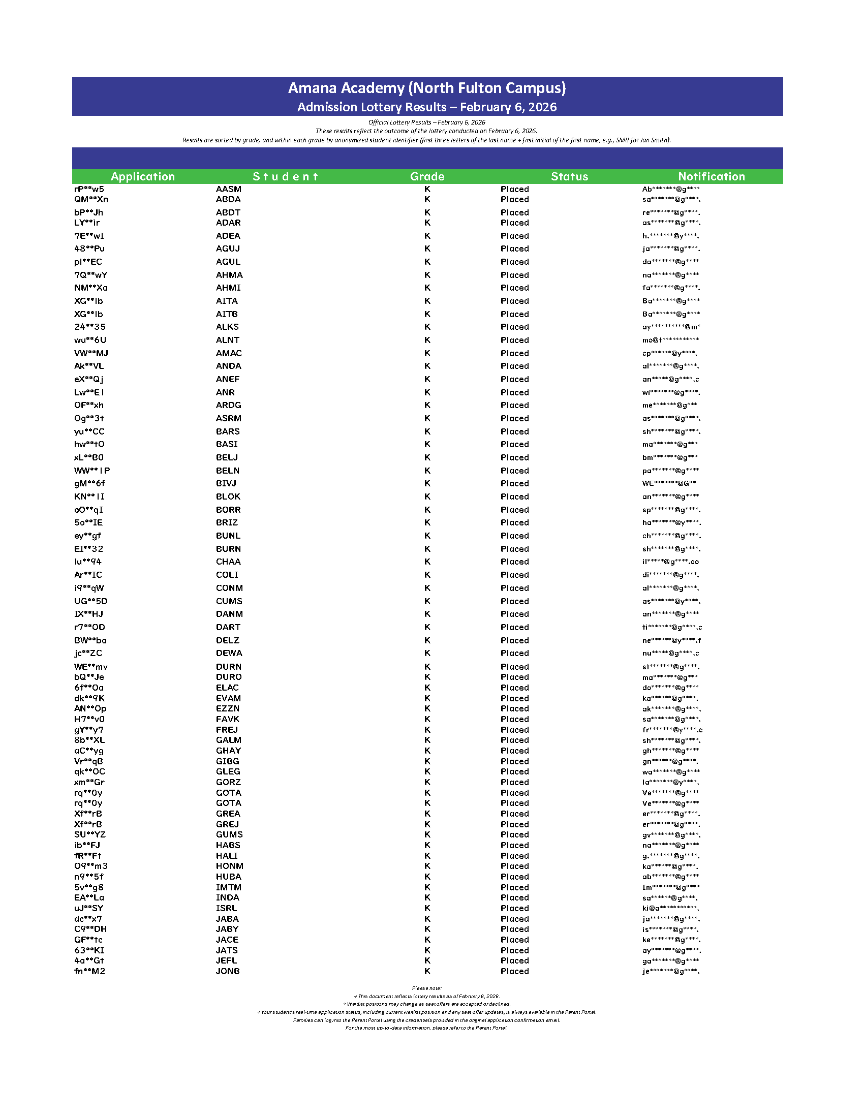 2026-2027 Lottery Results